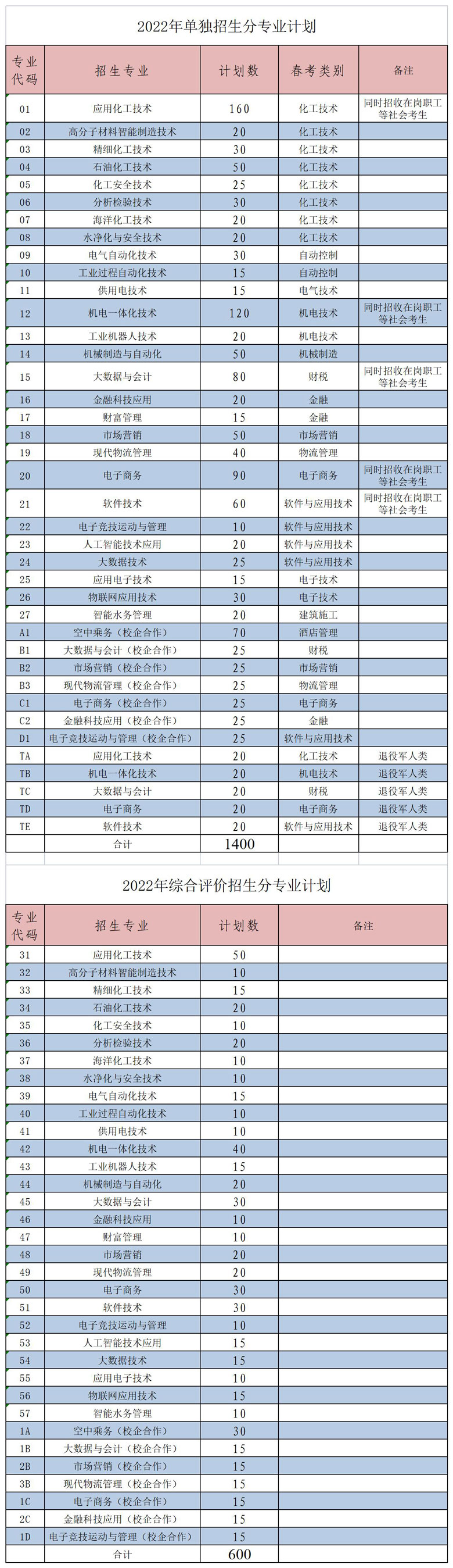 山東化工職業(yè)學(xué)院2022年安排單獨(dú)招生計(jì)劃 1400 人(含退役軍人 100 人),綜合評(píng)價(jià)招生計(jì)劃 600 人。單獨(dú)招生和綜合評(píng)價(jià)招生計(jì)劃為指導(dǎo)性計(jì)劃,會(huì)根據(jù)相關(guān)政策和報(bào)名錄取情況在總計(jì)劃內(nèi)適當(dāng)調(diào)整。