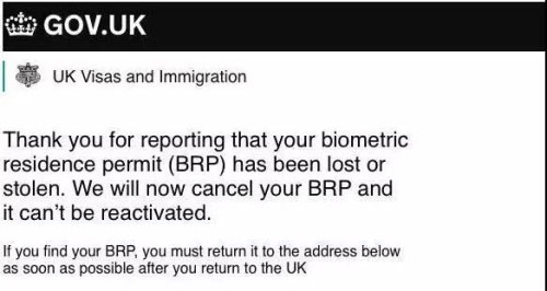 總的來說,在英國境外丟失BRP卡的話,需要在丟失國辦臨時簽replacement BRP visa,這個臨時簽允許你入境英國一次,花費?154。然后回到英國再申請replacement BRP。