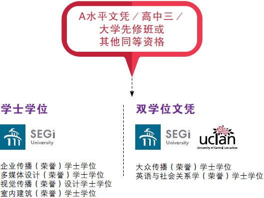 世紀(jì)大學(xué)與英國中央蘭開夏大學(xué) | 水平文憑;或高中三 / 相關(guān)大學(xué)先修班 / 預(yù)科班及格或其他同等資格 | 3年 | 哥打白沙羅 |