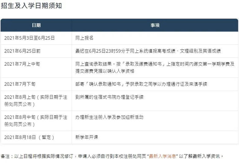 申請(qǐng)人必須最遲在2021年6月25日于網(wǎng)上系統(tǒng)填報(bào)高考成績(jī)、文理組別及英語成績(jī),申請(qǐng)人如收到申請(qǐng)編號(hào)通知及于網(wǎng)上系統(tǒng)填妥高考分?jǐn)?shù)、文理組別及英語分?jǐn)?shù),代表已完成報(bào)名手續(xù)。即使已辦理繳費(fèi),未填報(bào)高考成績(jī)、文理組別及英語科成績(jī)之申請(qǐng)將視為未完成報(bào)名手續(xù)而不予錄取。