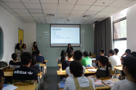 最先上場(chǎng)的周老師用非常溫柔的語(yǔ)氣向新生們傳達(dá)了不但要成功的走出去,更要走出去能夠成功的培養(yǎng)理念,這里強(qiáng)大的教師團(tuán)隊(duì)和豐富的大學(xué)資源會(huì)做他們堅(jiān)強(qiáng)的后盾,并結(jié)合自己孩子的親身經(jīng)歷向同學(xué)們分析了在出國(guó)前做好充分準(zhǔn)備的重要性。經(jīng)過(guò)周老師柔聲細(xì)語(yǔ)的安撫,同學(xué)們的狀態(tài)相當(dāng)放松,但隨后登場(chǎng)的教學(xué)總監(jiān)羅老師馬上讓現(xiàn)場(chǎng)的氣氛緊張了起來(lái),先是強(qiáng)調(diào)了學(xué)習(xí)任務(wù)的繁重,時(shí)間的緊迫,隨后介紹了各位任課老師的背景與特點(diǎn)。也許是怕給新生的壓力太大,或是怕給新生留下一個(gè)太過(guò)嚴(yán)厲的形象,羅老師隨后話(huà)鋒一轉(zhuǎn),分享起自己在巴斯大學(xué)與哈佛大學(xué)留學(xué)時(shí)的寶貴經(jīng)驗(yàn)。最后登場(chǎng)的陳老師向新生們?cè)敿?xì)說(shuō)明了在校期間的管理制度,在教學(xué)上嚴(yán)格管理,但生活上如果遇到了什么問(wèn)題,她們一定給予全力幫助,學(xué)生們也要學(xué)會(huì)張弛有度,打好接下來(lái)一年的持久戰(zhàn)。