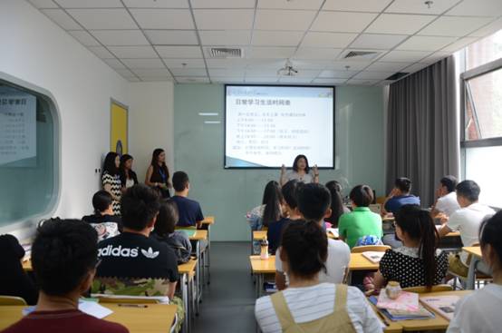 經(jīng)過(guò)上午的課程,有不少同學(xué)已經(jīng)互相熟悉起來(lái),中午三五成群的一起去食堂吃飯,儼然已經(jīng)開(kāi)始適應(yīng)起在北外的大學(xué)生活。在下午的課程結(jié)束后,北外國(guó)際教育學(xué)院出國(guó)留學(xué)部主任周老師,教學(xué)總監(jiān)羅老師,教務(wù)長(zhǎng)陳老師及各位任課老師參加了新生的歡迎會(huì),并給予了相當(dāng)有份量的講話(huà)。