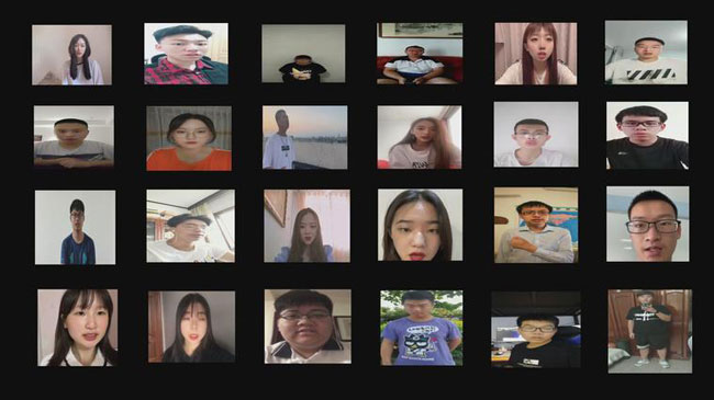 在隆重的開場后,老師與同學(xué)們、同學(xué)與同學(xué)間來了一次時尚的“親密接觸”——師生云見面。通過視頻相冊的形式展示了可愛可敬的老師們,與充滿青春朝氣,以夢為馬不負(fù)韶華的同學(xué)們。
