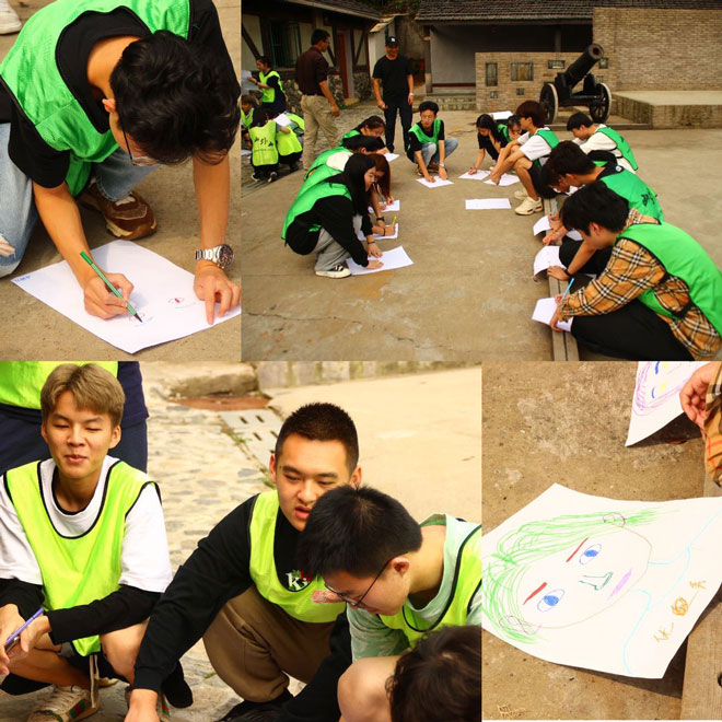在教官的引導(dǎo)下,通過一系列破冰小游戲,比如互相畫對(duì)方的畫像,一人一筆,幾個(gè)班的同學(xué)迅速熟悉起來,打成一片。