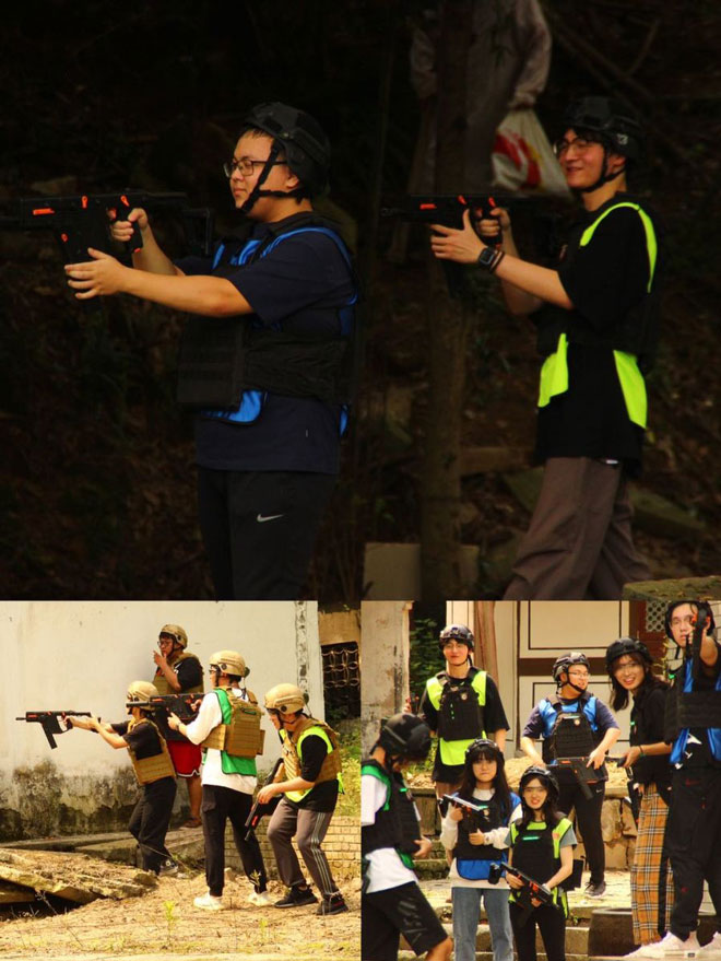 接下來的真人CS把同學(xué)們的熱情又帶到了高點(diǎn),不管是男生女生都躍躍欲試扳動(dòng)器械的每一個(gè)機(jī)關(guān),瞄準(zhǔn)狙擊。同學(xué)們分成兩組,互為攻守,真正地跟伙伴們通過計(jì)劃與協(xié)作,為自己的小部隊(duì)贏得勝利!同學(xué)們不畏paintball打在身上的疼痛,奮勇突破嚴(yán)密的防線,通過實(shí)踐意識(shí)到堅(jiān)持和團(tuán)隊(duì)精神才是勝利的關(guān)鍵。