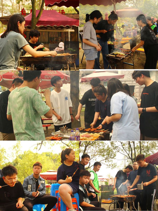 在激烈的真人CS戰(zhàn)斗結(jié)束之后,同學(xué)們迎來最期待的環(huán)節(jié)-自助燒烤,平常不會(huì)做飯的同學(xué)也紛紛加入,刷油,調(diào)味、烤制,哪怕是被煙熏到流淚也樂在其中,無形中讓同學(xué)們知道了有付出才有回報(bào)。