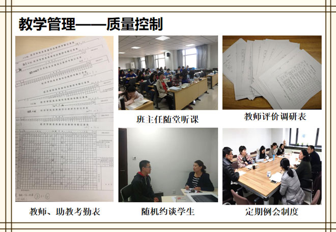 整個教學(xué)管理采用考勤、上課學(xué)習(xí)情況、平時作業(yè)完成情況、期中成績和期末成績等各方面來綜合評估。