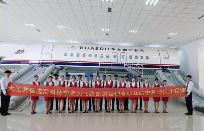 航空專業(yè)校外實訓(xùn)基地位于山東煙臺,實訓(xùn)分為機(jī)艙實訓(xùn)和日常學(xué)習(xí)兩部分。日常學(xué)習(xí)主要為形體與茶藝課程。機(jī)艙課程讓學(xué)生直接進(jìn)入模擬機(jī)場進(jìn)行崗位培訓(xùn),設(shè)身處地了解空乘日常工作,按照標(biāo)準(zhǔn)工作流程及要求嚴(yán)格訓(xùn)練,提前熟悉崗位職責(zé)。