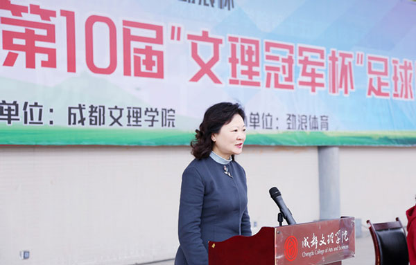 高華錦宣布:成都文理學(xué)院第十屆“文理冠軍杯”足球賽開幕。