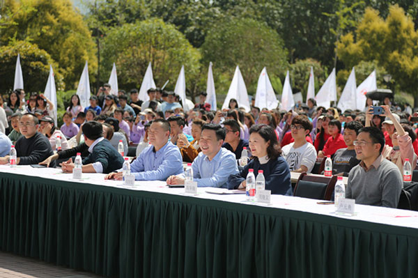 高華錦代表學(xué)校對(duì)本屆大學(xué)生社團(tuán)文化節(jié)開幕表示熱烈祝賀,對(duì)積極參加社團(tuán)節(jié)各項(xiàng)活動(dòng)的廣大師生及各部門工作人員表示誠(chéng)摯的感謝。她談到,學(xué)生社團(tuán)是學(xué)生培養(yǎng)興趣、發(fā)展個(gè)性的重要載體,是學(xué)?!叭私逃崩砟畹闹匾獌?nèi)容,也是大學(xué)生文化傳承與創(chuàng)新的實(shí)踐平臺(tái)。一年一度的社團(tuán)文化節(jié)既是對(duì)我校社團(tuán)建設(shè)成果的一次集中檢驗(yàn)和展示,也是廣大文理學(xué)子才藝展示的舞臺(tái)。她希望社團(tuán)建設(shè)繼續(xù)堅(jiān)持實(shí)施“五化”工作目標(biāo),進(jìn)一步提升社團(tuán)組織的育人功能,進(jìn)一步加強(qiáng)對(duì)學(xué)生社團(tuán)的分類指導(dǎo)。最后,她宣布第十五屆大學(xué)生社團(tuán)文化節(jié)開幕。