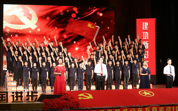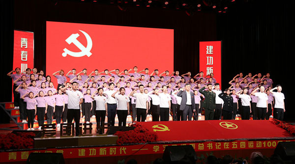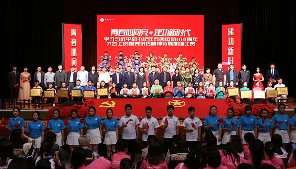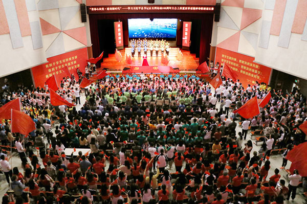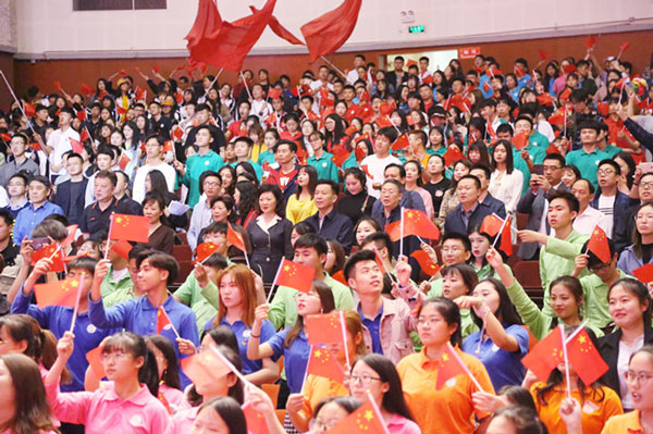為貫徹落實(shí)共青團(tuán)中央(中青發(fā)[2019]7號(hào))文件《共青團(tuán)中央關(guān)于認(rèn)真學(xué)習(xí)宣傳貫徹習(xí)近平總書記在紀(jì)念五四運(yùn)動(dòng)100周年大會(huì)上重要講話精神的通知》的要求,我校于5月9日晚7時(shí),在星空劇場(chǎng)隆重舉行“青春心向黨·建功新時(shí)代”學(xué)習(xí)習(xí)近平總書記在五四運(yùn)動(dòng)100周年大會(huì)上的重要講話精神詩歌朗誦比賽。我校董事長(zhǎng)劉學(xué)民,校長(zhǎng)唐小林,黨委書記高華錦等領(lǐng)導(dǎo)出席,各二級(jí)學(xué)院院長(zhǎng)、黨總支書記以及千余名師生共襄盛舉。