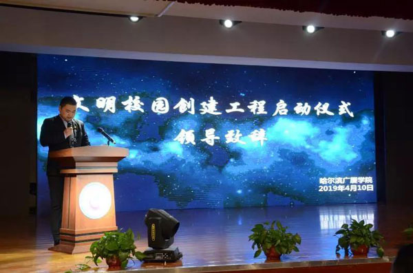 4月10日晚18時(shí),“哈爾濱廣廈學(xué)院文明校園創(chuàng)建工程”啟動(dòng)儀式在圖書(shū)館五樓報(bào)告廳舉行。學(xué)校領(lǐng)導(dǎo)、學(xué)生工作處、后勤保衛(wèi)處等部門(mén)領(lǐng)導(dǎo)及學(xué)生干部、二級(jí)學(xué)院學(xué)生代表共600人參加了本次活動(dòng)。