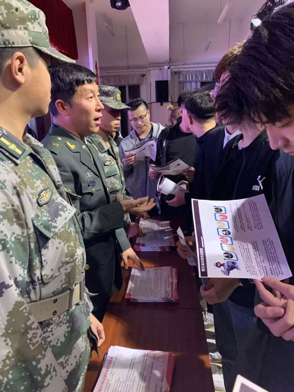 學(xué)校還將在學(xué)生公寓、各教學(xué)樓、食堂設(shè)立征兵政策咨詢臺(tái),充分利用微信、微博、校園網(wǎng)、廣播站宣傳征兵政策,同時(shí)組織召開(kāi)征兵政策宣講會(huì)、退役大學(xué)生士兵先進(jìn)事跡宣講會(huì),通過(guò)多種形式、多種渠道的征兵宣傳動(dòng)員,激勵(lì)有志青年投身軍營(yíng),為國(guó)建功。
