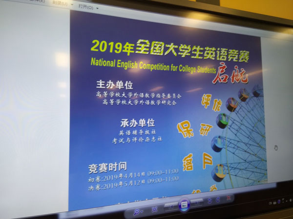 經(jīng)過近2個(gè)月的精心宣傳和組織,2019年全國大學(xué)生英語競賽(NECCS)初賽于4月14日上午9點(diǎn)在我校明德樓六個(gè)考場鳴鑼開賽。此次競賽分為C、D兩個(gè)類別,我校各個(gè)學(xué)院共計(jì)155人報(bào)名參加,其中C類參加人數(shù)144人,D類11人。