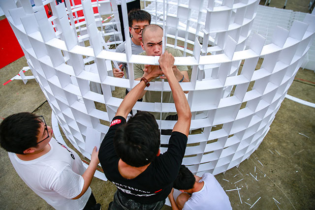 本次建造大賽由我校主辦,今年已是第二屆。舉辦建造節(jié)旨在激發(fā)學(xué)生的創(chuàng)新和創(chuàng)造能力,通過建造實(shí)踐增進(jìn)學(xué)生對(duì)建筑結(jié)構(gòu)、材料性能、建筑構(gòu)造、建造方式等認(rèn)識(shí)和理解,并通過在自己建造的建筑空間中進(jìn)行活動(dòng)體驗(yàn),感知和把握建筑使用功能、人體尺度、空間形態(tài)、建筑技術(shù)和物理特性等方面的基本要求,從中獲得建筑技術(shù)和藝術(shù)的啟發(fā)。