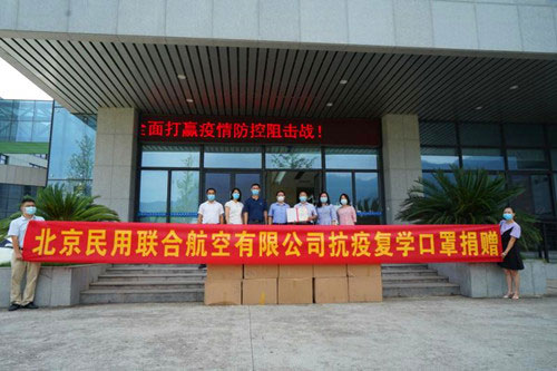 2020年7月28日上午,我?!爱a(chǎn)學(xué)合作 協(xié)同育人”項(xiàng)目合作辦學(xué)單位——北京民用聯(lián)合航空有限公司向我校捐贈(zèng)2萬(wàn)只防護(hù)口罩,助力我校疫情防控工作。我校副校長(zhǎng)何仕率后勤處、繼續(xù)教育學(xué)院相關(guān)負(fù)責(zé)人與北京民用聯(lián)合航空有限公司代表?xiàng)钗母幌壬捌漤?xiàng)目組相關(guān)負(fù)責(zé)人出席捐贈(zèng)儀式。
