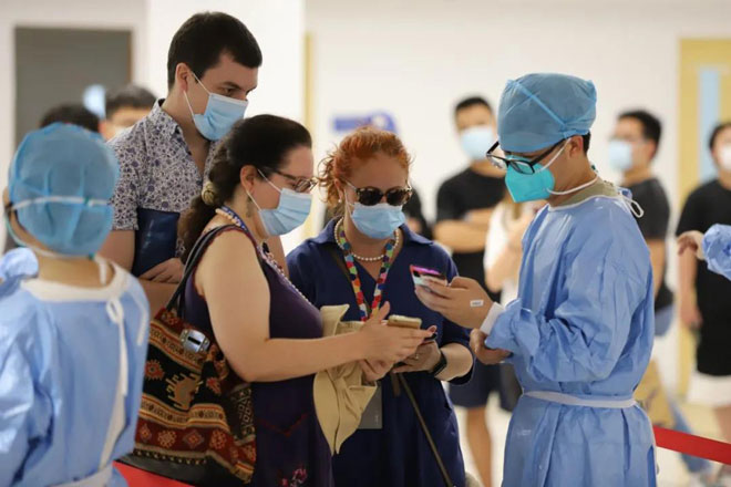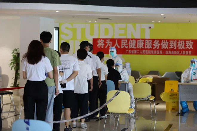 珠海高新區(qū)人民醫(yī)院的醫(yī)護(hù)人員和30多名UIC師生志愿者堅(jiān)守一線,采樣工作有條不紊地進(jìn)行
