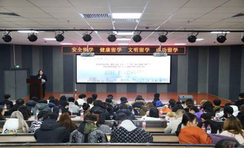 由教育部國際合作交流司主辦、教育部留學服務(wù)中心承辦、西安外國語大學出國留學人員培訓部協(xié)辦的“2020年教育部‘平安留學’出國留學行前培訓會”,于12月20日在西安外國語大學雁塔校區(qū)2號教學樓地下階梯教室舉行。由于受新冠肺炎疫情的影響,這次接受培訓人員,主要是我校國際項目學生160人。培訓會由出國留學人員培訓部學生科科長劉莉主持,副主任楊麗娟致辭。