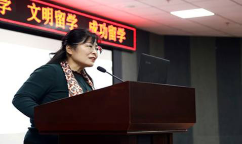 在莊嚴的《國歌》聲中,培訓會拉開了帷幕。楊麗娟副主任就教育部“平安留學”出國留學行前培訓的背景和服務(wù)項目、出國留學的國家政策等作了簡要介紹,她希望廣大出國留學人員能認真領(lǐng)會“平安留學、文明留學、健康留學、成功留學”的理念,堅守愛國主義精神,培養(yǎng)和提升自身的家國情懷,為出國留學做好充分準備。
