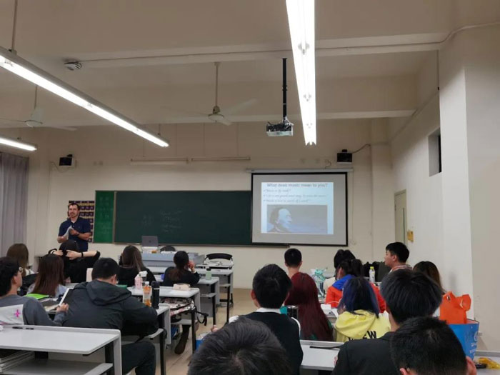 2021年4月22日晚上18:00在上外松江校區(qū)四教樓410教室開展了關(guān)于多元文化音樂及音樂創(chuàng)作的專題講座,講座老師為Gonzales Michael Robert。2020級蘭卡項目、英國2+2項目和澳大利亞四星級項目的同學們聆聽了本次講座。