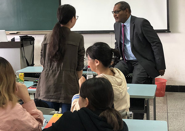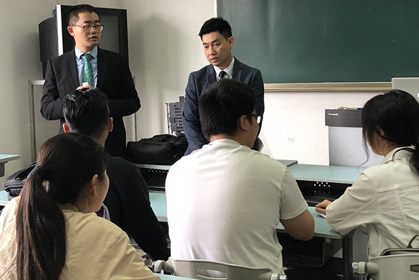 講座在509教室舉行,出席講座的校方代表有:商學(xué)院高級講師戴老師,國際部副院長馬克.威廉姆斯。