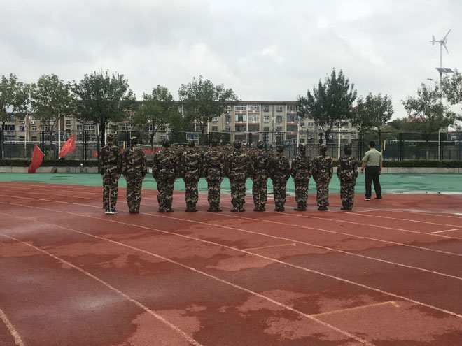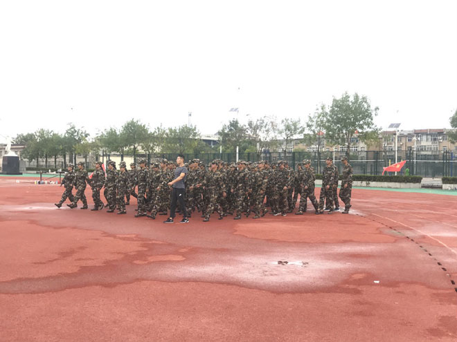 響亮的口號回蕩在諾大的石大操場上,所有人都可以感受到來自四面八方因軍訓而張揚起來的朝氣蓬勃。綠油油的草地上,一群身穿迷彩的活力青年整齊的站著軍姿,有力的踏著正步,喊著響亮的口號,唱著激昂的軍歌。當走進訓練場時,第一眼就看到了正隨風飄蕩著的旗寫著“迷彩軍訓,青春無悔”的橫幅。遠望過去,是整齊的方塊隊,有的站著軍姿,有的走著正步,有的練著跑步,真是一群石大的菁菁學子。
