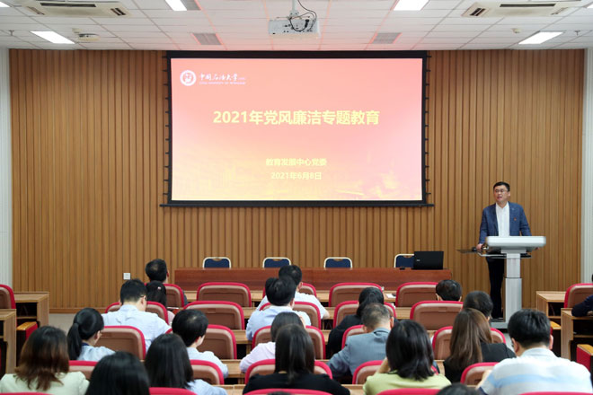 馬國剛指出,今年是“十四五”開局之年,抓好黨風廉政建設意義重大。教育發(fā)展中心黨委將嚴格貫徹落實學校黨委關于全面治黨工作要求,統(tǒng)籌抓好中心業(yè)務發(fā)展與黨風廉政建設工作,有計劃地開展黨員在線理論學習、觀看警示紀錄片、廉政教育基地現(xiàn)場學習、廉政文化專題宣傳推送等系列活動,積極營造風清氣正、和諧奮進的干事氛圍,不斷將黨史學習教育推向深入。中心全體黨員要自覺將學習教育與行動實踐結(jié)合起來,切實增強廉潔自律意識,做廉潔自律表率,以昂揚的精神狀態(tài)和踏實的工作作風,推進各項工作有序、高效開展,為新時期我校繼續(xù)教育發(fā)展做出應有貢獻。