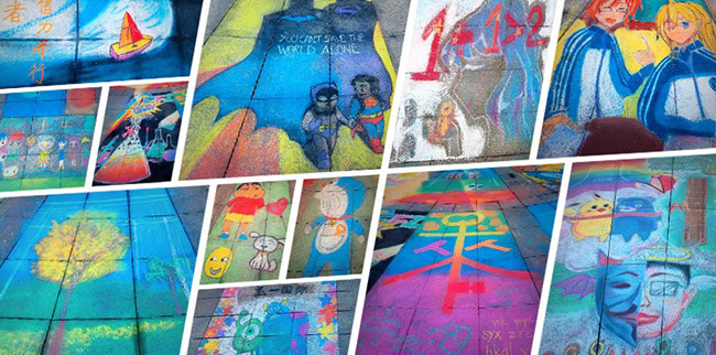 12月12日,涂鴉大賽于我校金鑰匙廣場(chǎng)隆重舉行。本次的主題為“UNITED WE ARE 你 · 我 · 他”,在頗具哲理的短語(yǔ)“1+1大于2”的啟發(fā)下,同學(xué)們聚集于廣場(chǎng),用手中的畫筆在地磚上涂抹色彩,讓心靈和青春恣意徜徉。