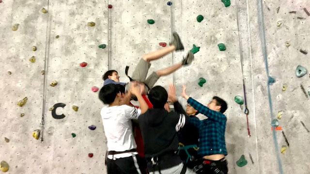 重回地面后,從未如此喜愛過腳踏實(shí)地的感覺。仍有同學(xué)對并未登頂感到遺憾而打起精神再次上陣。幾番嘗試之后,迎來了作為收官的速度之爭。兩班分別派出一名代表,在難度近似的巖壁上展開較量。差距始終并未拉開許多,比賽卻仍然需要冠軍。競爭的目的不是為了激起大家的勝負(fù)欲,只是為了磨煉自身。每個(gè)人挑戰(zhàn)的對象永遠(yuǎn)都不該是他人,而是自己!