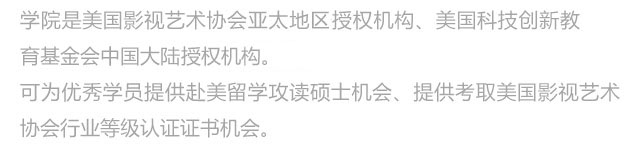 師資優(yōu)勢:影視教育界著名專家教授、影完善的軟硬件配套。教學環(huán)境:千畝郊野視行業(yè)核心圈層。公園環(huán)繞周邊。 區(qū)位優(yōu)勢:學院坐落于北京電影學院文創(chuàng)園內,園區(qū)內擁有百余家影視行專相蘭公司,真正意義的影視行業(yè)核心區(qū)。投資團隊:吉喆基金、賽富亞洲基金、中信國通、嘉頓投資、維西資本、譽上投資等強大的投資團隊為制作影視劇投資。 實踐機會:學院自有星影時代影視公司,計劃未來3年投拍100部影視劇與新媒體電影;學院在文創(chuàng)園區(qū)內自有大小攝影棚、綜藝棚10座,并與行專內近百家影視行專相蘭公司建立戰(zhàn)略合作關系,建立人才庫為行業(yè)提供人員儲備。國際合作:美國影視藝術協(xié)會亞太地區(qū)唯一授權機構,美國科技創(chuàng)新教育基金會中國大陸唯一授權機構??蔀閮?yōu)秀學員提供免費赴美留學攻讀碩士機會,提供考取美國影視藝術協(xié)會行業(yè)等級認證證書機會。