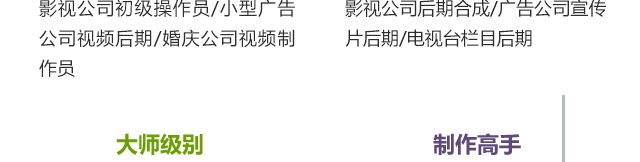 這個(gè)崗位在整個(gè)特效制作領(lǐng)域人才需求量最大。除了高端電影行業(yè)的應(yīng)用,像廣告、電視劇、動(dòng)畫、游戲等領(lǐng)域同樣也需后期合成技術(shù)。